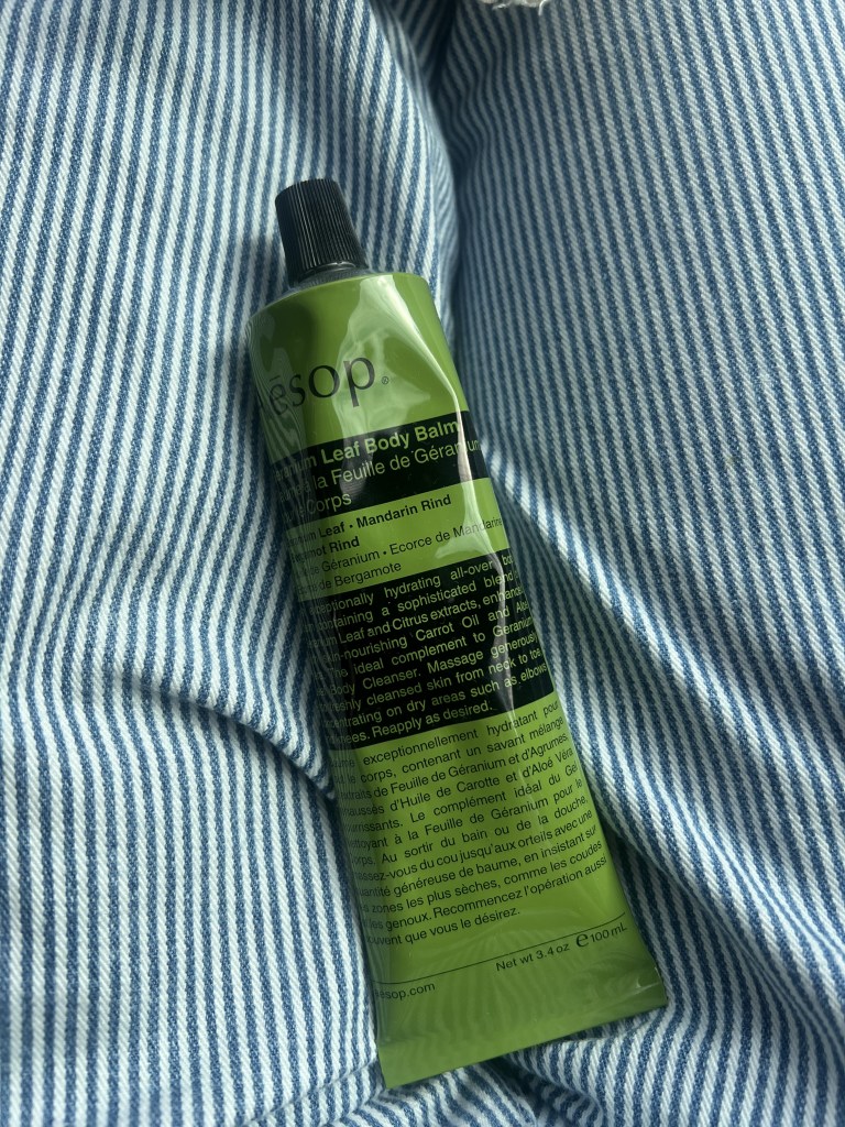 - Aesop body balm for a hand cream : Sampled it on the street and my jaw dropped. I couldn’t stop thinking about the smell. I put it on right before bed and it became a sort of Pavlov’s dogs trigger for me.